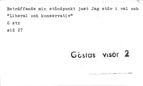 //// Beträffande min ståndpunkt just Jag står i val och "Liberal och konservativ" //// 6 str sid 27 //// Gsras visor 2 ////
