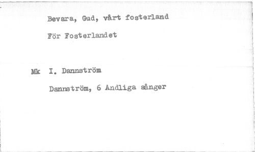 //// Bevara, Gud, vårt fosterland För Fosterlandet //// Mk 1. Dannström //// Dansström, 6 Andliga sånger ////