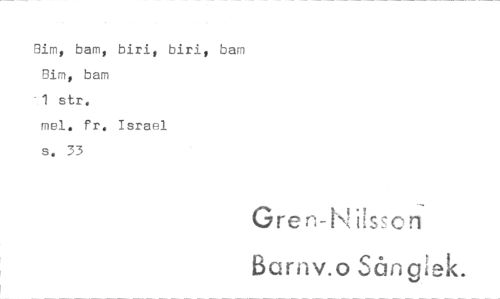 //// bam, biri, biri, bam //// Bim, bam //// 1 str. //// mel. fr. Israel //// s. 33 //// Gren-Nilsson //// Barnv.o Sånglek. ////