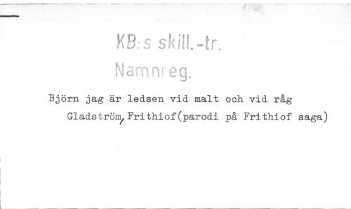 //// KB:s //// blam nreg. //// Björn jag är ledsen vid malt och vid råg Gladström Frithiof(parodi på Frithiof saga) ////