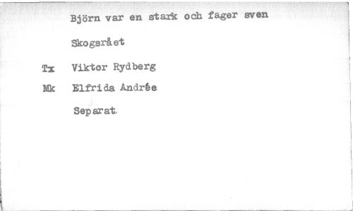 //// Björn var en stark och fager sven Skogsrået //// Tx Viktor Rydberg Nk Elfrida Andrée Separat ////