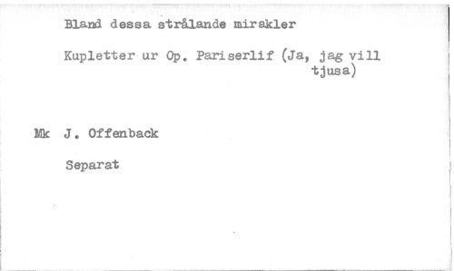 //// Bland dessa strålande mirakler //// Kupletter ur Op. Pariserlif (Ja, jag vill //// tjusa) //// Mk J. Offenback Separat ////