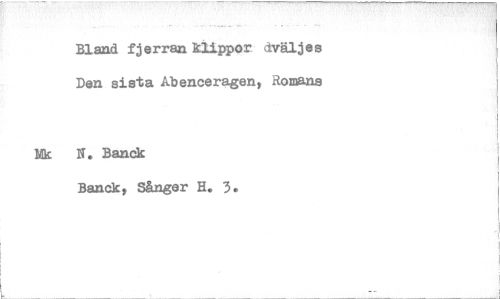 //// Bland fjerran klippor dväljes //// Den sista Abenceragen, Romans //// Nk N. Banek //// Banck, Sånger H. 3. ////