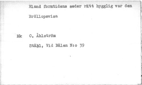 //// Bland forntidens seder rätt hygglig var den Bröllopsvisa //// Nk 0. Åhlström //// Stä#1, Vid Bålen N:o 39 ////