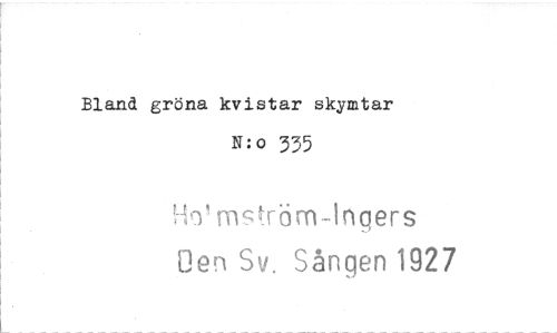 //// Bland gröna kvistar skymtar //// N:o 335 //// mström-Ingers //// Oen Sv. Sången 1927 ////