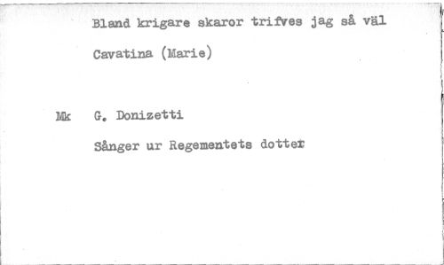 //// Bland krigare skaror trifVes jag så väl Cavatina (Marie) //// Rk G. Donizetti //// Sånger ur Regementets dotter ////