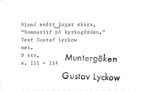 //// Bland småttingar skara, "Sommarlif på kyrkogården." Text Gustaf Lyckow mel. //// 9 str. Muntergöken //// s. 151 - 154 //// G ustav Lyckow ////