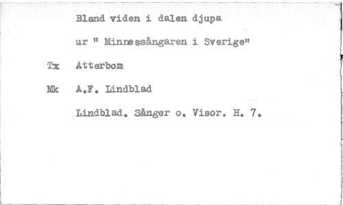 //// Bland viden i dalen djupa //// ur " Minnessångaren i Sverige" //// Tx Atterbom //// Mk A.F. Lindblad //// Lindblad. Sånger o. Visor. H. 7. ////