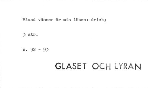 //// Bland vänner är min lösen: drick; 3 str. //// s. 92 - 93 //// GLASET 0,1 LYRAN ////