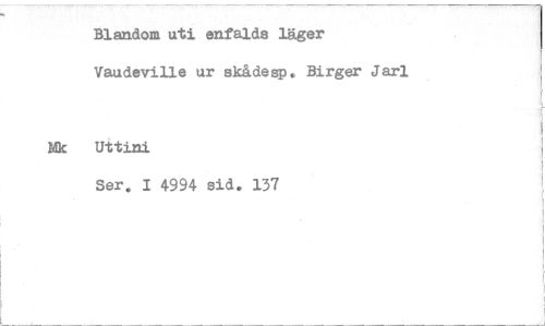//// Blandom uti enfalds läger //// Vaudeville ur skådesp. Birger Jarl //// Mk Uttini //// Ser, I 4994 sid. 137 ////