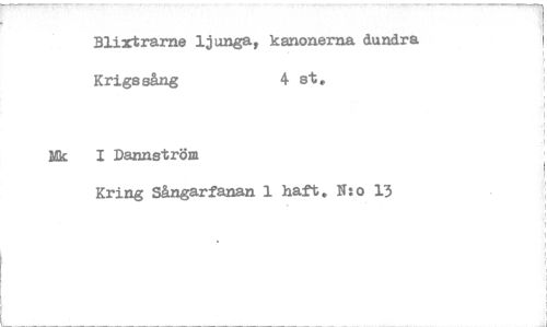 //// Blixtrarne ljungat kanonerna dundra //// Krigssång 4 et. //// Mk I Dannetröm //// Kring Sångarfanan 1 haft. N:o 13 ////