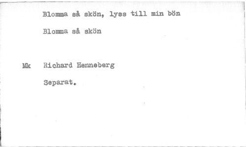 //// Blomma så skön, lyss till min bön Blomma så skön //// Mk Richard Henneberg Separat. ////
