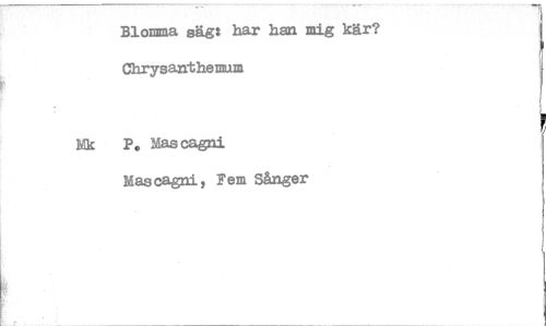 //// Blomma säg: har han mig kar? Chrysanthemum //// n P. Mas cagni //// Mas cagni, Fem Sånger ////