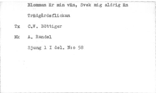 //// Blomman är min vänt Svek mig aldrig än //// Trädgårdsflickan //// Tx C.W. Böttiger //// Mk A. Randel //// Sjung 1 I del. N:o 58 ////