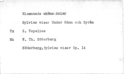 //// Blommande sköna dalar //// Sylvias visa: Under Rönn och Syrån //// Tx Z. Topelius //// Ek W. Th, Söderberg //// Söderberg,Sylvias visor Op. 14 ////