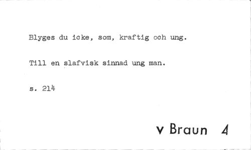 //// Blyges du icke, som, kraftig och ung. Till en slafvisk sinnad ung man. s. 214 //// v Braun 4 ////