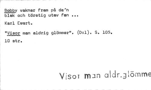 //// poply vaknar fram på da'n blek och törstig utav fan ... //// Karl Ewert. //// "Visor man aldrig glömmer". (0:1). S. 105. 10 str. //// Visor mun aldr.jiömme ////