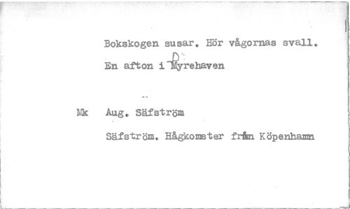 //// Bokskogen susar. Hör vågornas svall. En afton i 1&vrehaven //// Ek Aug. Säfström //// Säfström. Hågkomster från Köpenhamn ////