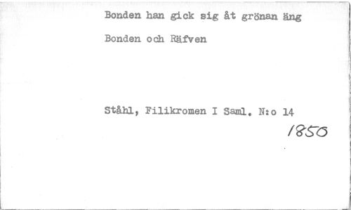 //// Bonden han gick sig åt grönan äng Bonden och Räfven //// Ståbly Filikromen I Samt. N: d 14 //// /9670 ////