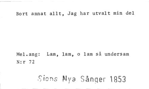 //// Bort annat allt, Jag har utvalt min del //// Mel.ang: Lam, lam, o lam så undersam N:r 72 //// ,bions Nya Sånger 1853 ////
