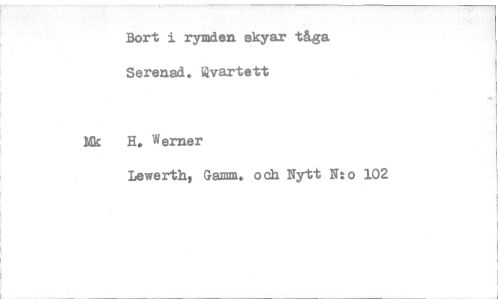 //// Bort i rymden skyar tåga Serenad. !kvartett //// Nk H. Werner //// Lewerth, Gama. och Nytt N:o 102 ////