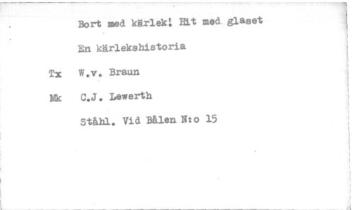 //// Bort med kärlek: Hit med. glaset //// En kärlekshistoria //// Tm Ly. Braun //// C.J. Lewerth //// Ståhl. Vid Bålen N:o 15 ////