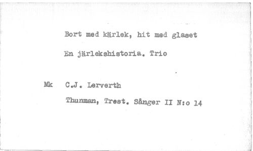//// Bort med kärlek, hit med glaset En järlekshistoria. Trio //// Nk C.J. Lerverth //// Thunman, Trest. Sånger II N:o 14 ////