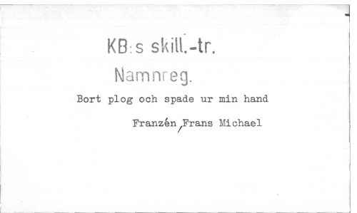 //// KQ s //// Namnreg. //// Bort plog och spade ur min hand Franzen/Frans Michael ////