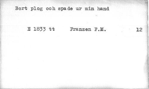 //// Bort plog och spade ur min hand //// E 1833 tt Pranzen. F.M. 12 ////