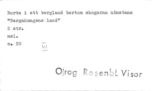 //// Borta i ett bergland bortom skogarna nånstans "Bergakungens land" //// 2 str. //// mel. //// sr 20 //// VI //// Ofrogz:enibi. Visor ////
