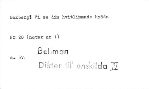 //// Boxberg? Vii. sa din hvitlåtamade hydda //// Nr 28 (nnfterrnr 1) //// Bellman //// s. 57, onskida BZ ////