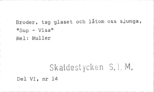//// Broder, tag glaset och Tåtom oss sjunga, "Sup - Visa" //// Mel: Muller //// Skaldestycken S, I. M, //// Del VI, nr 14 ////