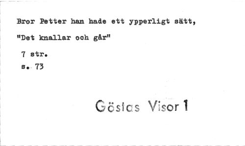 //// Bror Petter han hade ett ypperligt sätt, "Det knallar och går" //// 7 str. s.- 73 //// c:s 1 ////