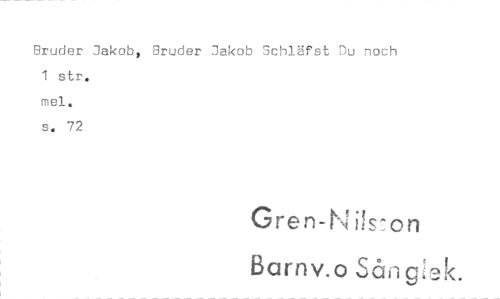 //// Bruder Jakob, Bruder Jakob Schläfst Du noch 1 stri mel. s. 72 //// Gren-N i!s::on //// Barnv.o Sångek. ////