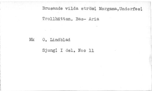 //// Brusande vilda ström: Morgana,Underfeet Trollhättan. Bas- Aria //// Mk 0. Lindblad //// Sjung! I del. N:o 11 ////
