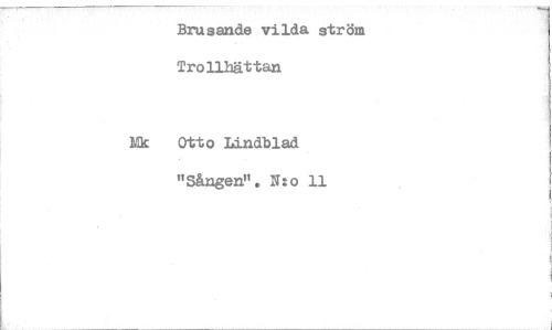 //// Brusande vilda ström Trollhättan //// Nk Otto Lindblad Sången". N:o 11 ////