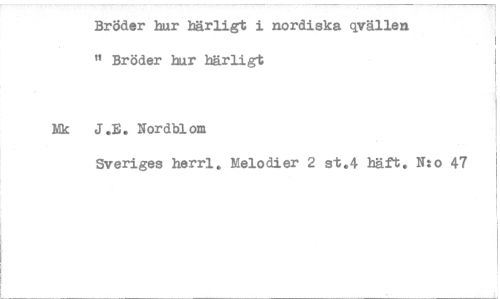 //// Bröder hur härligt i nordiska civällen " Bröder hur härligt //// Mk J.B. Nordblom //// Sveriges herrl. Melodier 2 st.4 höft. Nto 47 ////