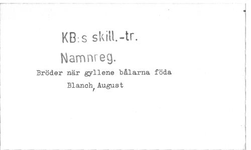 //// KB:s skilt.-tr. //// Namnfeg. //// Bröder när gyllene bålarna föda Blanch August ////