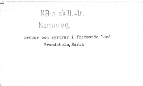 //// KB:s skift.-tr. //// Namrveg. //// Bröder och systrar i främmande land Brandsholmjaria ////