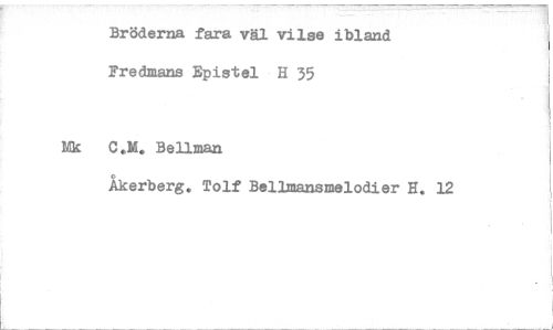 //// Bröderna fara väl vilse ibland Fredmans Epistel H 35 //// Mk C.M. Bellman //// Åkerberg. Tolf Bellmansmelodier H. 12 ////