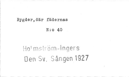 //// Bygder, där fädernas //// N: o 40 //// Ho" ms_rbm-Ingers //// Oen Sv. Sången 1927 ////