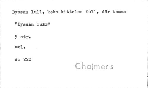 //// Ryssan lull koka kittelen fullt där komma "Bysatan lull" //// 5 str. mel. //// s. 220 //// Chalmers ////