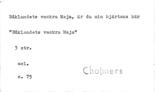 //// Båklandets vackra Maja, är du min hjärtans kär "Båklandets vackra Maja" //// 3 str. mel. //// Cl ci iders //// 8. 75, ////