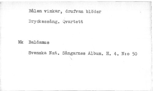 //// Bålen vinkar, drufVan blöder Dryckessång. Qvartett //// Mk Baldamus //// Svenska Nat. Sångarnes Album. H. 4. N:o 50 ////