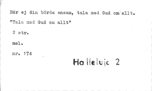 //// Bär ej din börda ensam, tala med Gud om: allt. //// "Tala med Gud om allt" //// 2 str. //// mel. //// nr. 174 //// Ha lietuic 2 ////