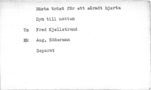 //// Bästa tröst för ett såradt hjerta //// Hym till natten //// Tx Fred Kjellstrand //// Nk Aug. Söderman //// Separat ////