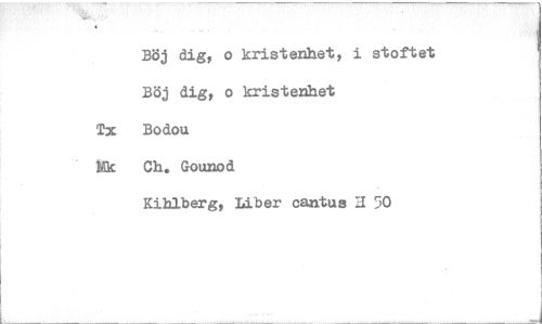 //// Böj dig, o kristenhet, i stoftet //// Böj dig, o kristenhet //// Tx Bodou //// Mk Ch. Gounod //// Kihiberg, Liber cantue 2 50 ////
