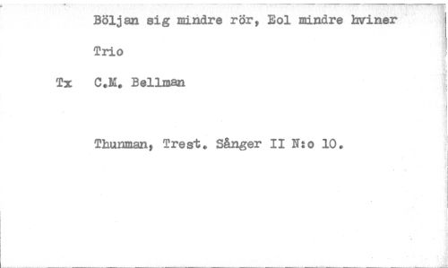 //// Böljan sig mindre rör, Bol mindre laviner Trio //// Tx C.D. Bellman //// Thunman, Tre st. Sånger II N:o 10. ////