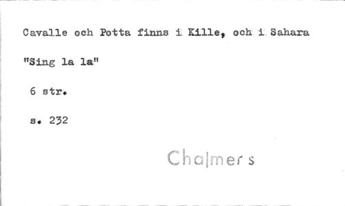 //// Cavalle och Potta finne i_ Kille, och I_ Sahara "Sing la la" //// 6 str: //// 232 //// Chaimer s ////
