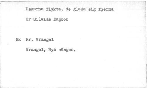 //// Dagarna flykta de glada sig fjerma Ur Silvias Dagbok //// Mk Fr. :rangel //// Wrangel, Nya sånger. ////